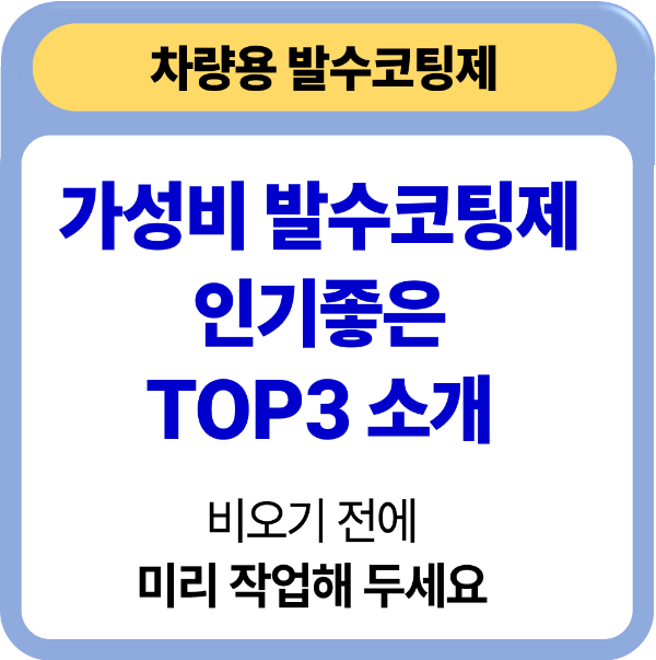 운전중 갑자기 내리는 비 때문에 시야확보가 되지 않는 경험이 있으실 겁니다. 특히 비오는 야간에는 정말 차선조차 보이지 않아서 사고의 위험이 배로 증가하게 되는데요, 평소 앞유리와 사이드미러에 방수코팅 작업을 해놓으시면 이런 사고를 예방하실 수 있습니다. 시중에 나와 있는 가성비 최고의 TOP3 발수코팅제를 소개해 드릴테니 발수 코팅제 선택에 참고하시기 바랍니다.