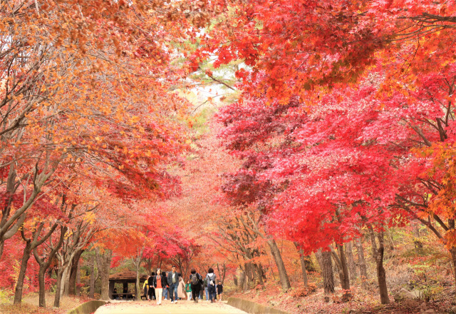 전북 정읍의 내장산은 예로부터 단풍 명소로 널리 알려졌으며, 가을이 되면 산 전체가 붉은색과 주황색으로 뒤덮입니다. 특히 내장사까지 이어지는 단풍터널은 국내에서 가장 유명한 산책 코스 중 하나로, 나무들이 만든 커다란 아치 아래를 걷는 경험은 가을 여행의 백미라고 할 수 있습니다. 도로를 따라 이어진 단풍길은 빛이 비치는 각도에 따라 색감이 달라져 하루에도 여러 번 모습을 바꾸며, 사진을 좋아하는 분들 사이에서도 특히 인기가 높습니다.