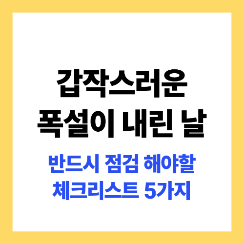 겨울철 폭설은 예기치 못하게 찾아오기 때문에 언제 어떻게 우리 일상 생활이 흐트러질지 모릅니다. 특히 예고없이 내리는 갑작스러운 폭설은 교통 혼잡, 시설 손상, 안전사고 등을 유발하기 때문에 철저한 대비와 점검이 필요한데요, 겨울철을 맞이해서 평소에 폭설에 대비하는 마음가짐으로 폭설 내린 날 꼭 점검해야 할 내용을 정리해 보았습니다.