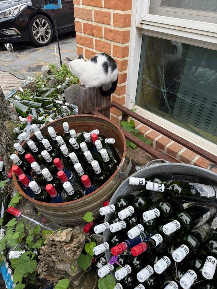 식당에 들어서기 전에 이놈들이 먼저 반겨주네요. 아주 심쿵합니다. 아마도 주인분들이 고양이를 좋아하시는 것 같았습니다. 여기저기 주위에 귀엽게 웅크리고 있습니다.