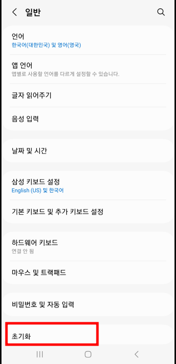 ① 설정에서 초기화하는 방법 (일반적인 경우)