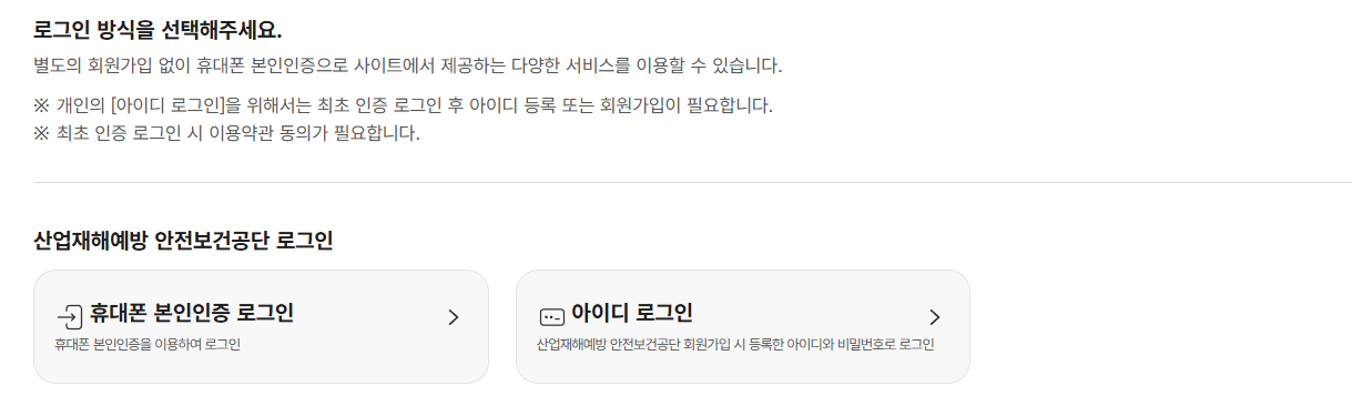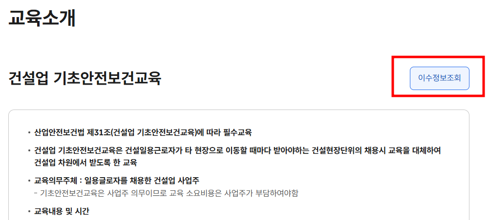 - '건설업 기초안전보건교육' 메뉴 선택: