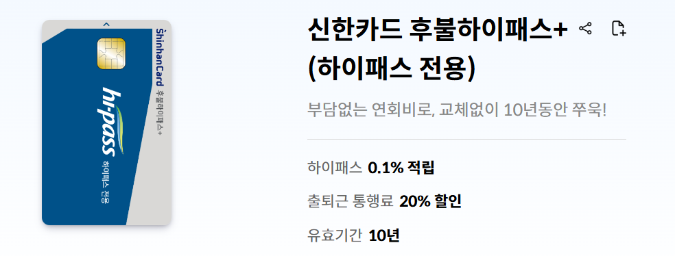 먼저 소개할 카드는 신한카드의 ‘후불하이패스+’입니다.