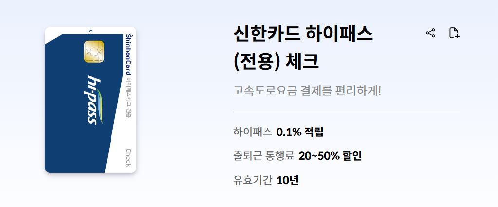 마지막으로 소개할 카드는 신한 하이패스 체크카드입니다.