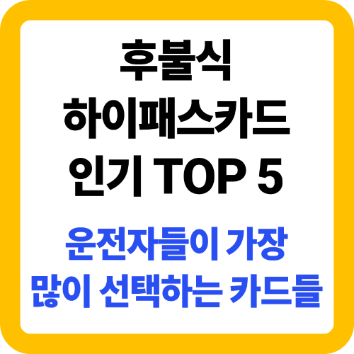 저도 후불카드를 사용하고 있기 때문에 , 제가 만들때 살펴봤던 실제로도 많은 운전자들이 실제로 사용하는 후불 하이패스 카드 중 혜택이 괜찮은 5가지를 소개해드리겠습니다.
