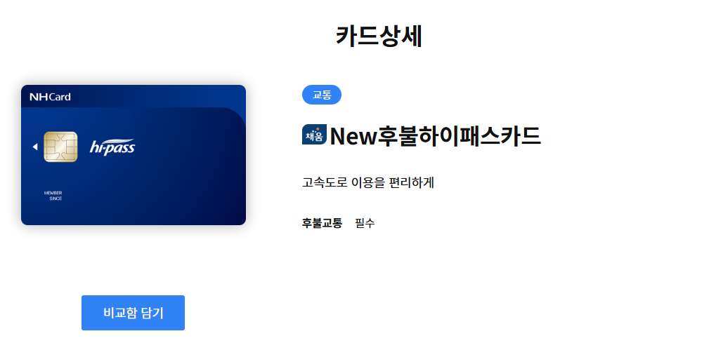 농협카드 사용자라면 채움 NEW 후불 하이패스 카드를 추천드립니다.