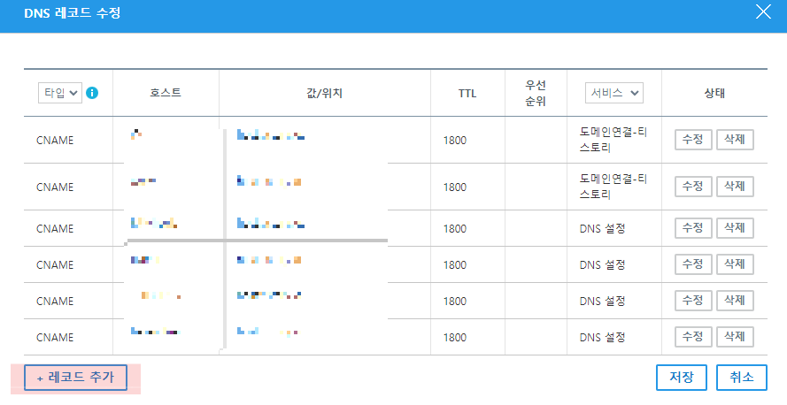 6️⃣ 레코드 추가를 누르고 아래와 같이 입력합니다.