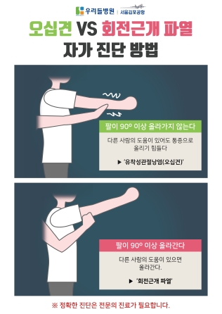 - 전문가 진단은 필수: 자가 진단으로 오십견이라 생각하고 무리하게 스트레칭을 하다가 회전근개가 더 파열되는 경우가 많습니다. 통증이 2주 이상 지속된다면 반드시 초음파나 MRI 검사를 권장합니다.