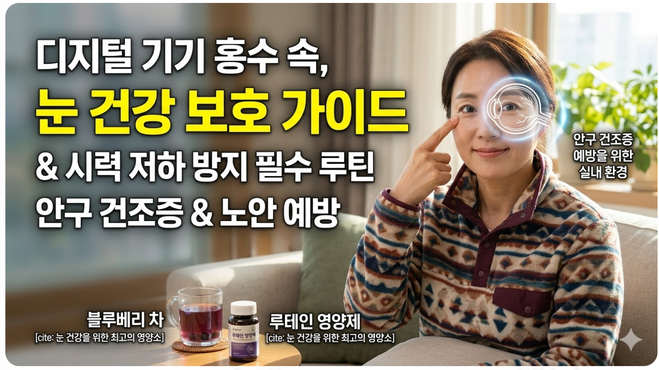 눈은 세상을 보는 창이자 삶의 질을 결정하는 가장 소중한 감각 기관입니다. 디지털 시대를 살아가는 우리에게 눈 건강 관리는 이제 선택이 아닌 생존을 위한 필수 과제입니다. 오늘 알려드린 20-20-20 법칙과 영양 섭취, 그리고 올바른 생활 습관들을 하나씩 실천해 보십시오. 작은 관심과 노력이 모여 사용자님의 눈을 오랫동안 밝고 건강하게 지켜줄 것입니다.