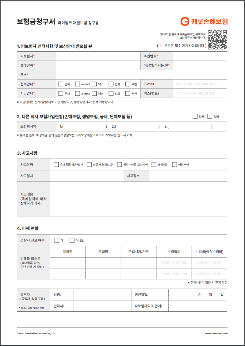 보험금청구서 작성 너무 어려워하지 마시고 솔직하고 간결하게 작성하셔서 꼭 피해입은 내용 보상받으시길 바라겠습니다.