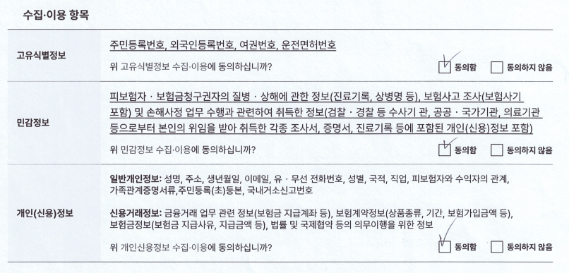 그 다음 페이지 부터는 개인정보처리동의 관련 내용인데 그냥 동의함에 체크하시면 됩니다.