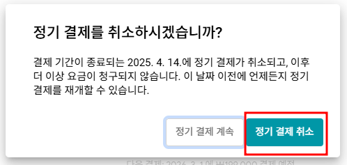- 해지 후에는 자동으로 다음 결제일에 결제가 진행되지 않습니다.