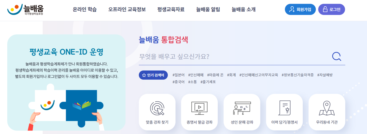 늘배움은 다양한 연령층을 위한 무료 온라인 학습 플랫폼으로, 특히 재테크 관련 강의가 많이 제공됩니다. 이 사이트에서는 기초적인 재테크 강의부터 심화된 자산 관리 강의까지 다양한 콘텐츠를 무료로 제공하고 있어, 재테크 입문자들에게 매우 유용합니다.