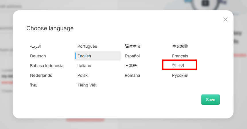 한국어 설정은 매우 쉽게 되어 있습니다.