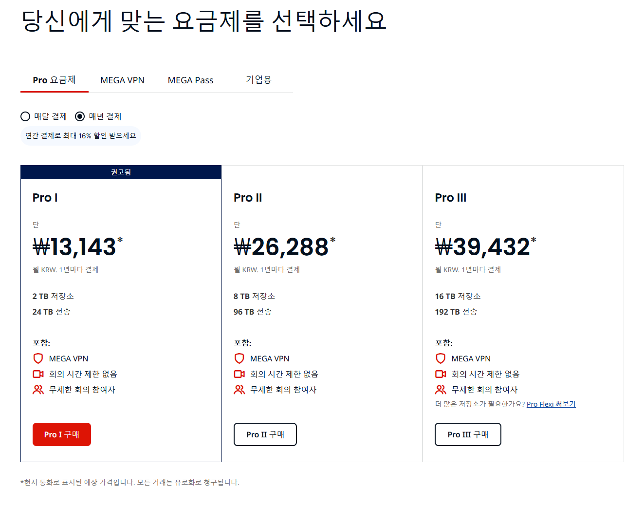 지금은 무료이지만 돈을 더 내면 저장용량이 더욱 커진다고 하니 큰 용량이 필요하신 분은 좌측 하단에 업그레이들 눌러 보시기 바랍니다. 그러면 요금제 안내가 뜹니다.