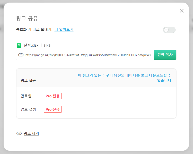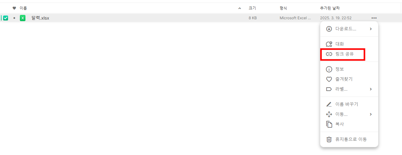 클릭하면 메뉴가 뜨는데 여기서 링크 공유를 선택합니다.