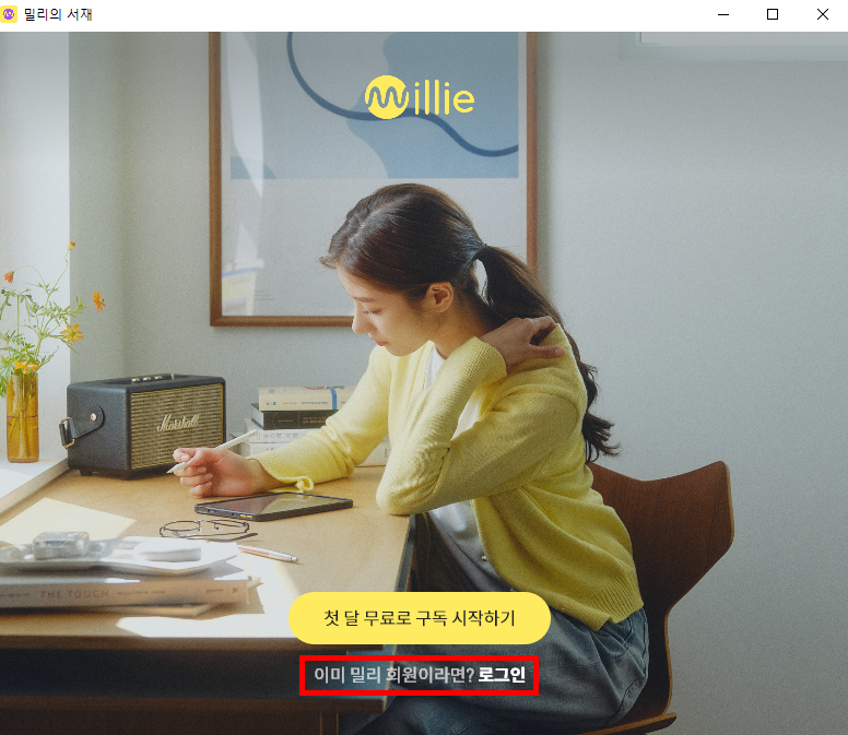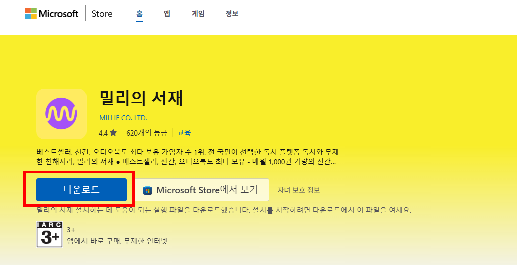 먼저 밀리의 서재 PC뷰어 다운로드 페이지로 가셔야 합니다.