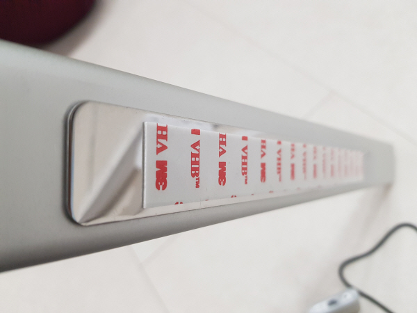 아니면 요즘 책상이나 테이블의 다리가 스틸로 된 제품들이 많이 있는데요, 그 부분에 그냥 조명을 붙이면 되니까 여러가지로 응용해서 장착하셔도 될 것 같습니다. 저 같은 경우도 거실의 보조 테이블이 철제 프레임으로 되어 있어서 그곳에 붙여 놓았네요.