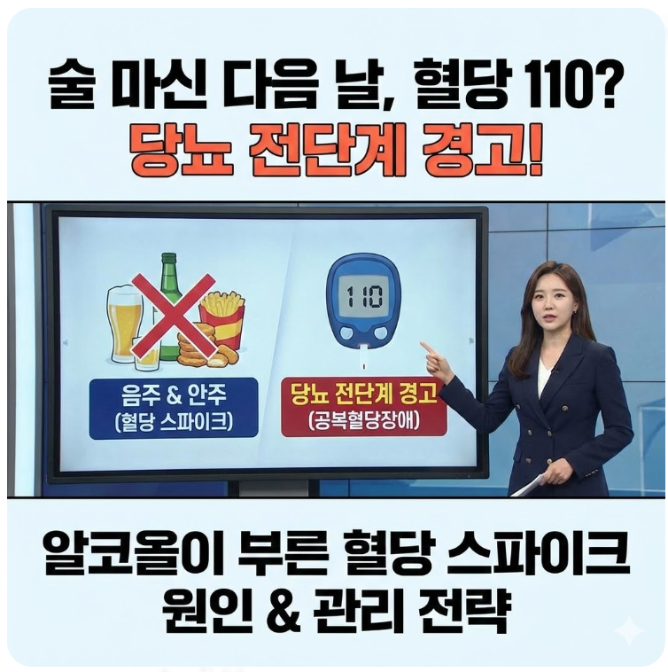 술 마신 다음 날의 혈당 110 mg/dL은 단순한 숫자가 아니라, 현재 대사 시스템이 감당할 수 있는 한계를 보여주는 지표입니다. 술과 안주가 주는 즐거움도 좋지만, 우리 몸의 뿌리인 인슐린 감수성과 간 건강을 먼저 챙기는 지혜가 필요합니다.