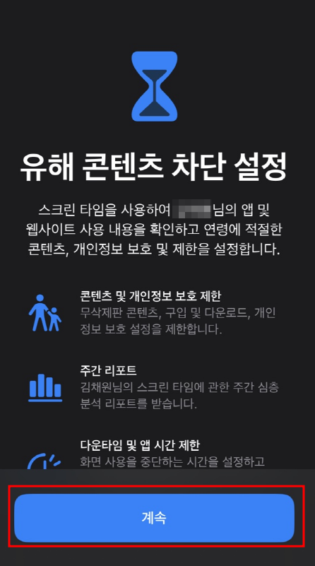 앱 사용 시간 제한, 야간 사용 차단, 콘텐츠 차단 등 다양한 제어가 가능합니다.