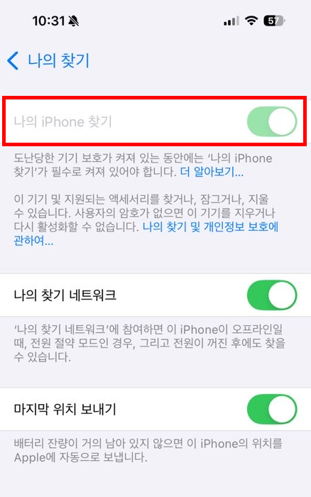 아이폰 “나의 찾기” 활성화 설정 방법