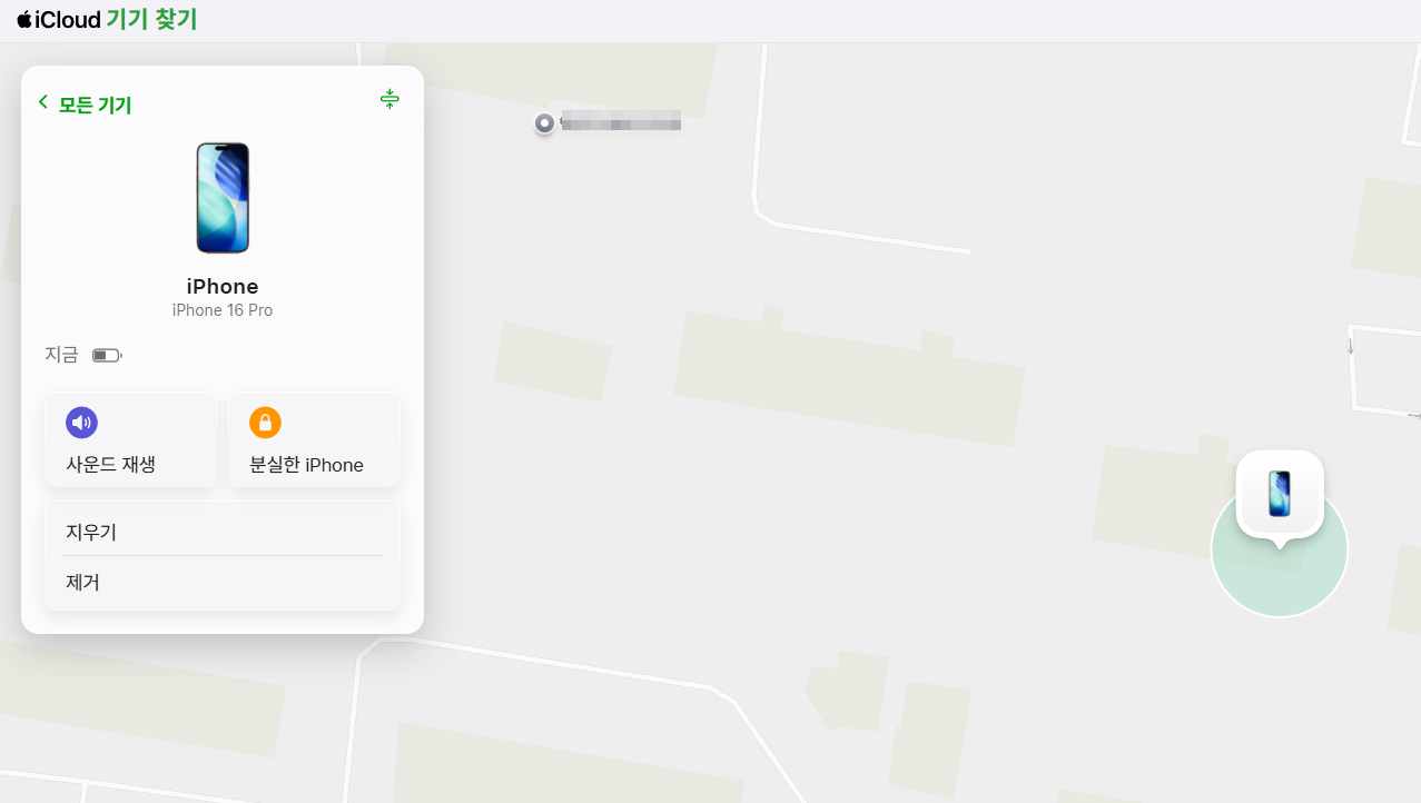 갑자기 아이폰을 잃어버렸다면 다른 스마트폰이나 PC에서 iCloud.com에 접속합니다. Apple ID로 로그인한 뒤 기기 찾기 메뉴로 이동하면 지도에 아이폰의 현재 위치 또는 마지막으로 확인된 위치가 표시됩니다.