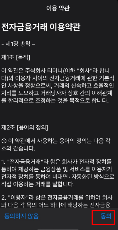 이제 다 왔습니다. Tmoney 클릭하고 나서 들어가면 약관에 동의한 다음 넘어갑니다.