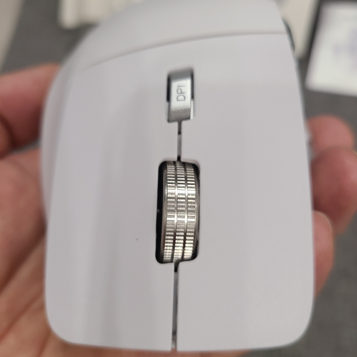 휠위에 있는 DPI (Dots per Inch) 버튼은 마우스를 1인치 움직였을때 마우스 커어서가 이동하는 거리를 픽셀로 나타낸 지표인데요 누를때마다 800/1600/2400/3200/4000 순서로 변동되기 때문에 해당 모니터의 해상도에 따라서 변경해서 사용하시면 됩니다.