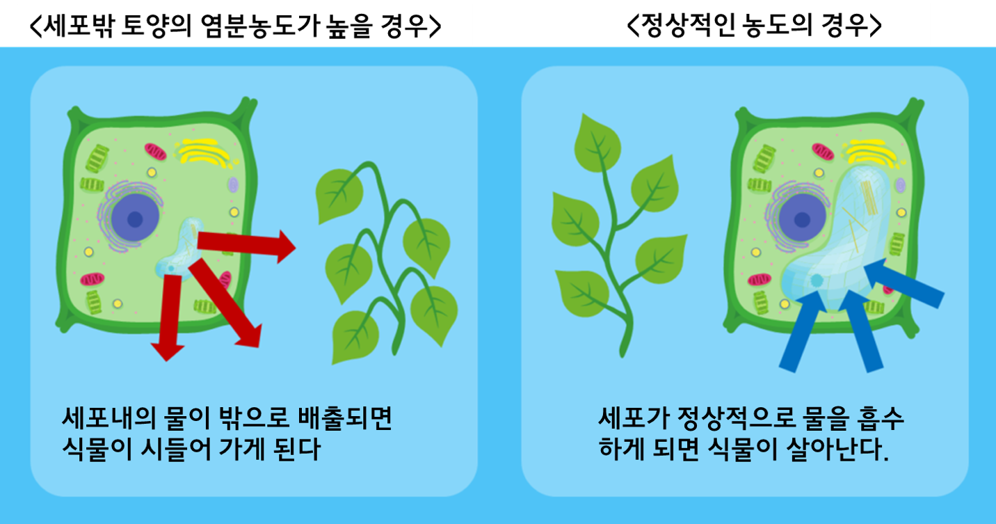 좀 더 자세히 설명드리면 가로수 주변의 토양에 쌓인 고농도의 염류가 삼투압 현상을 일으켜서 식물의 수분흡수를 방해하고, 식물의 세포막 형성에 중요한 역할을 하는 주요 양분인 ca 이온이 비정상적으로 과도 흡수 되기 때문이라고 합니다.