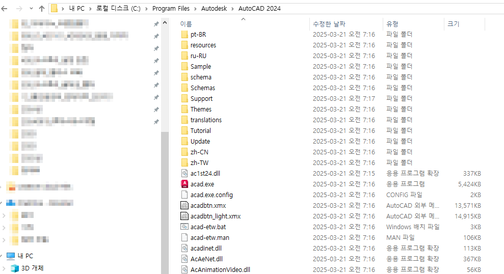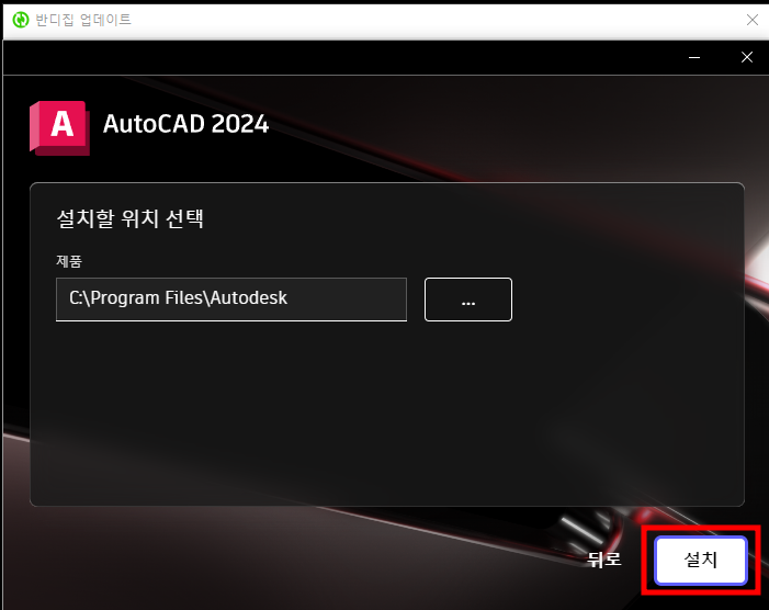 먼저 AutoCAD_2024_Korean_Win_64bit_dlm_001_002.sfx.exe 파일을 클릭하여 실행합니다.