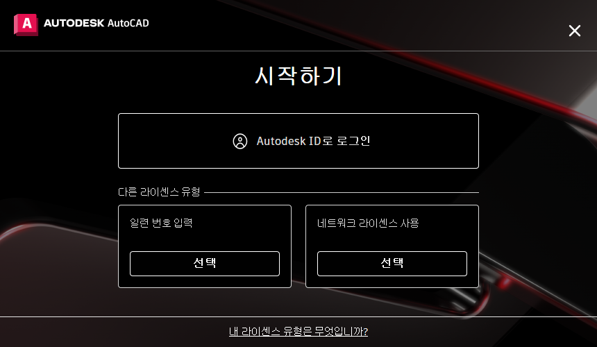 설치된 파일을 눌러 실행하게 되면 아래와 같이 라이센스 유형을 선택하라는 창이 뜨게 됩니다.