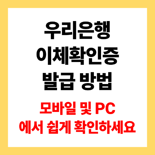 우리은행에서 이체확인증을 발급받는 방법은 여러 가지가 있으며, 모바일 앱, 인터넷 뱅킹, 그리고 영업점 방문을 통해 가능합니다. 각 방법을 단계별로 설명드리겠습니다.