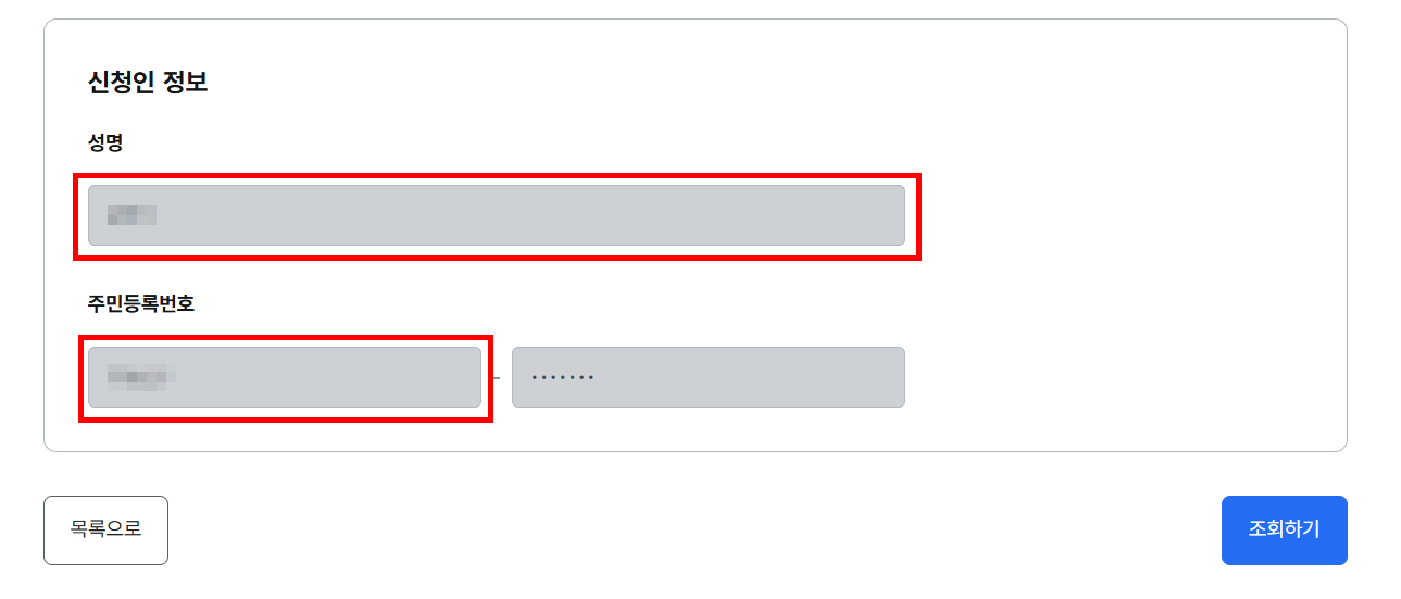 신청인 정보에 이름하고 주민등록번호 앞자리가 이미 입력이 되어 있을 겁니다.