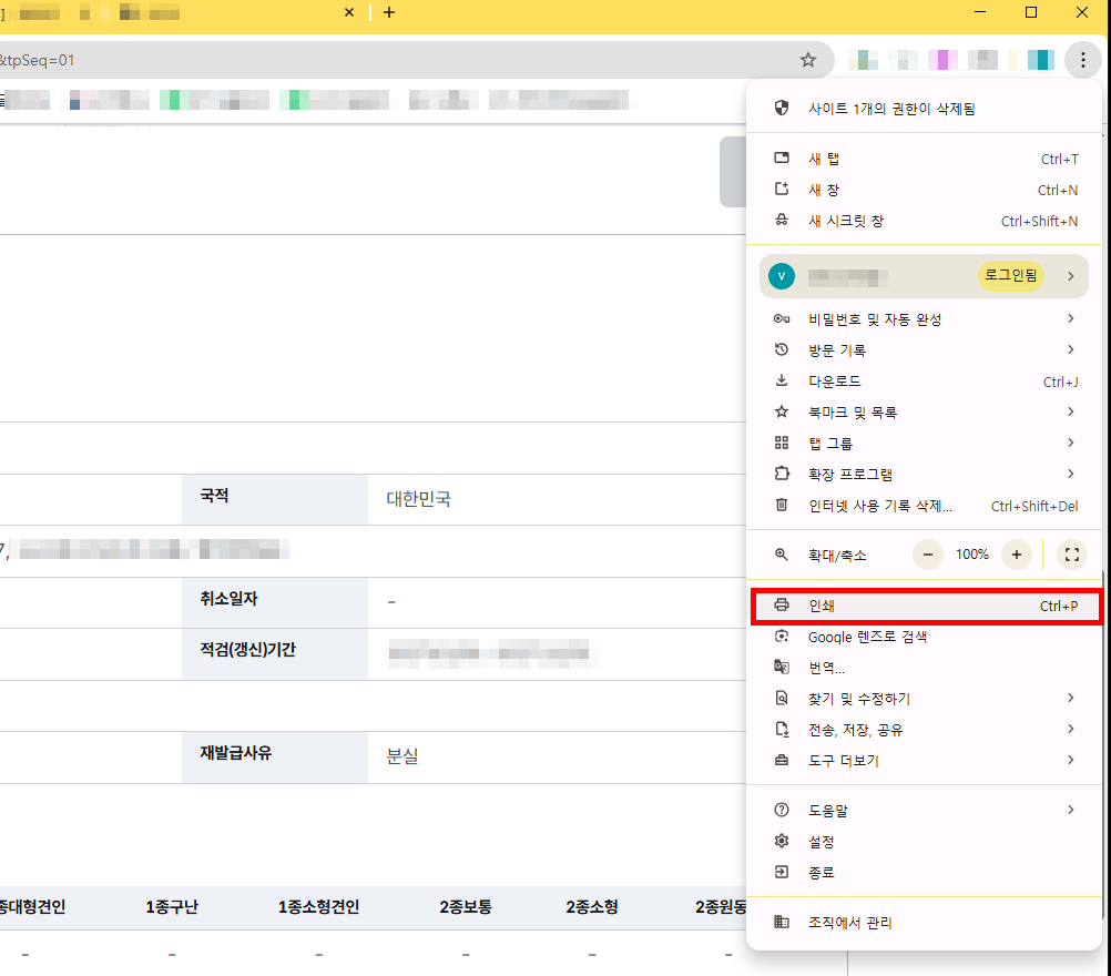 혹시 이걸 화면 인쇄하고 싶으시면 화면 우측 상단 점3개 있는데 클릭하셔서 인쇄로 들어가서 하시면 됩니다.