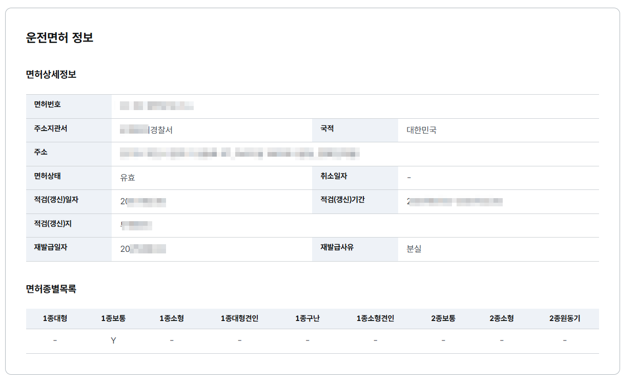 운전면허 정보가 아주 상세하게 표시됩니다.