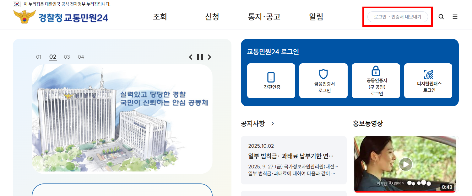 먼저 경찰청 교통민원 사이트로 들어갑니다. 아래 바로가기 해 놨습니다.
