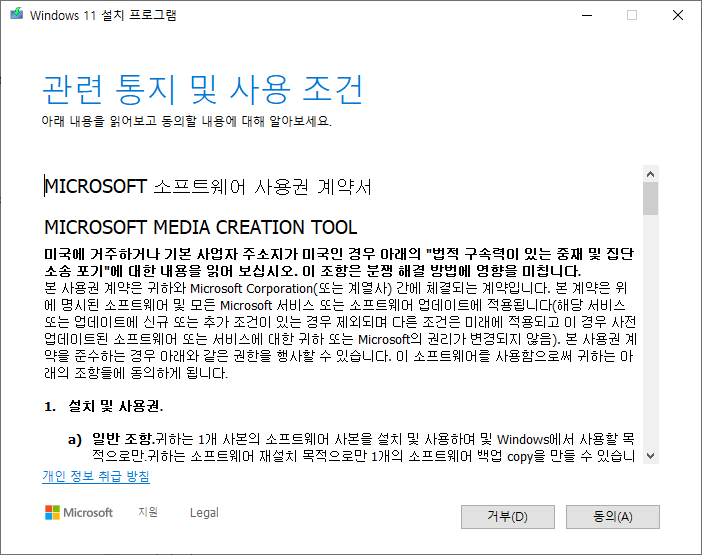 이제 다운로드 받은 MediaCreationToolW11.exe 파일을 더블클릭해서 실행합니다.