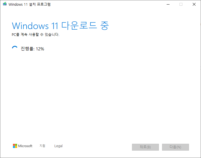 윈도우 설치 파일이 자동으로 다운로드되고 USB에 복사됩니다.