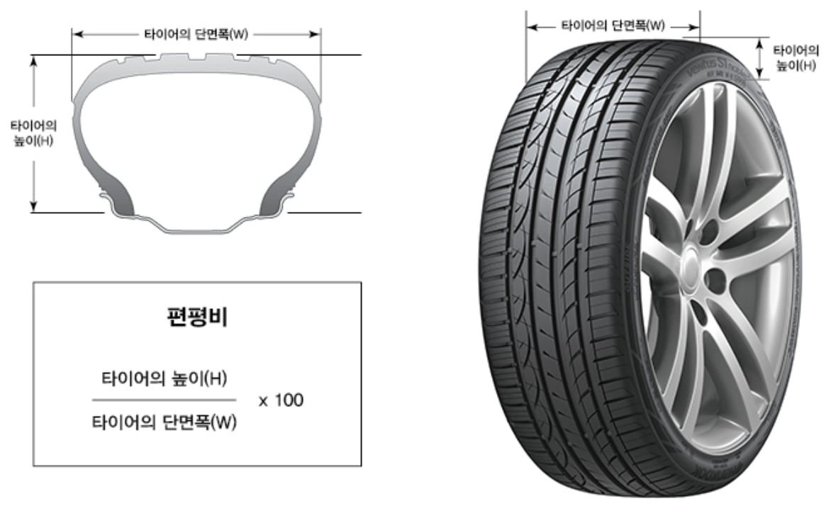 ✔ 제조사의 권장 편평비를 준수하는 것이 차량 성능과 안전성을 유지하는 데 가장 중요합니다.