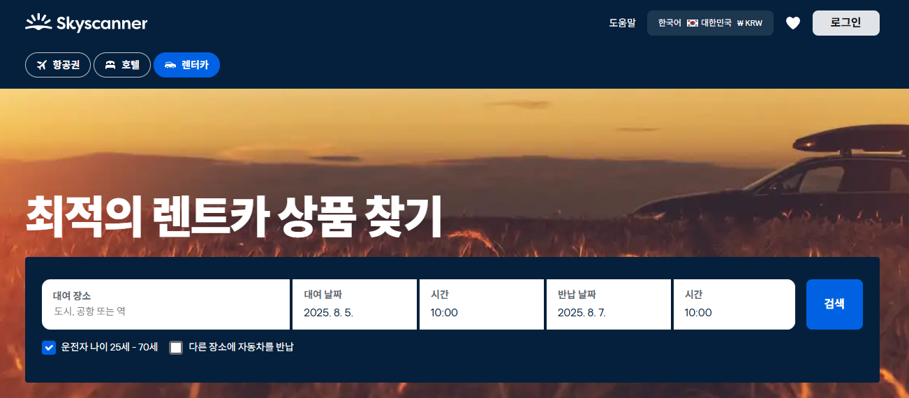 스카이스캐너에서 제주 렌터카 가격 비교