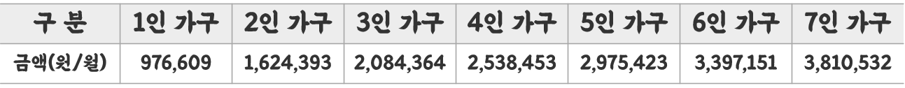☑ 8인가구는 7인 가구 기준과 6인 가구 기준의 차이를 7인 가구 기준에 더하여 산정합니다.