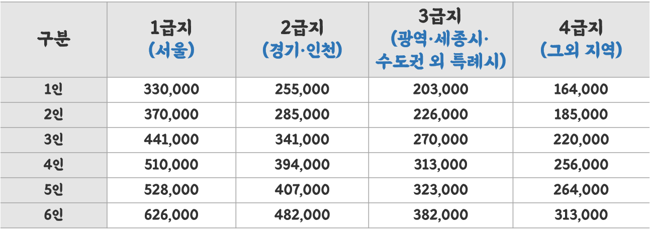 ☑ 10인 가구 이상은 동일한 방식에 따라 적용합니다. (2인 증가 시 10% 인상)