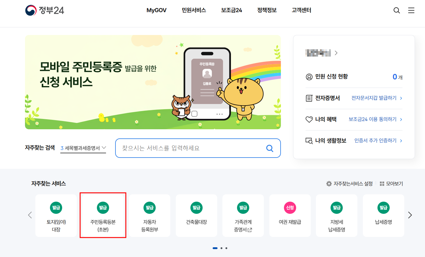 그만큼 자주 사용되는 만큼, 매번 주민센터를 찾아가는 건 번거로울 수밖에 없습니다. 하지만 정부24 사이트를 이용하면 24시간 언제든지 발급받을 수 있습니다.