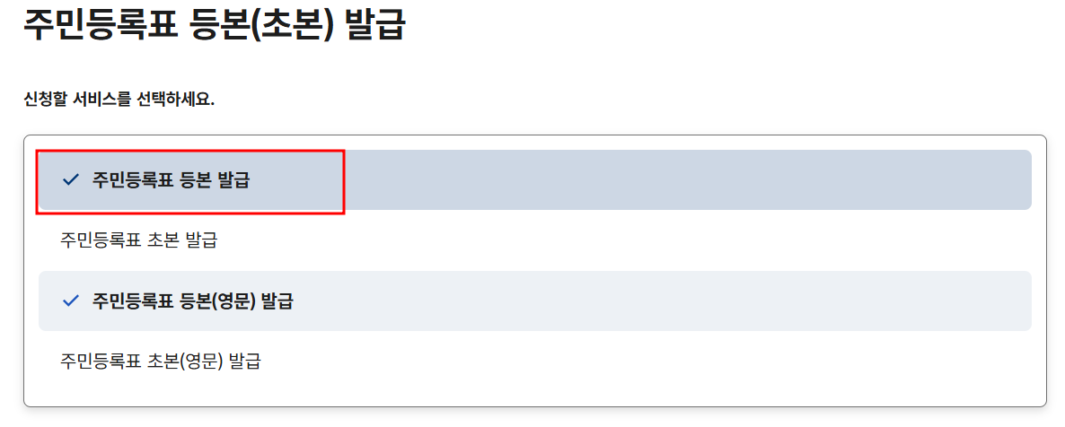 여기서 주민등록표 등본 발급을 클릭합니다.