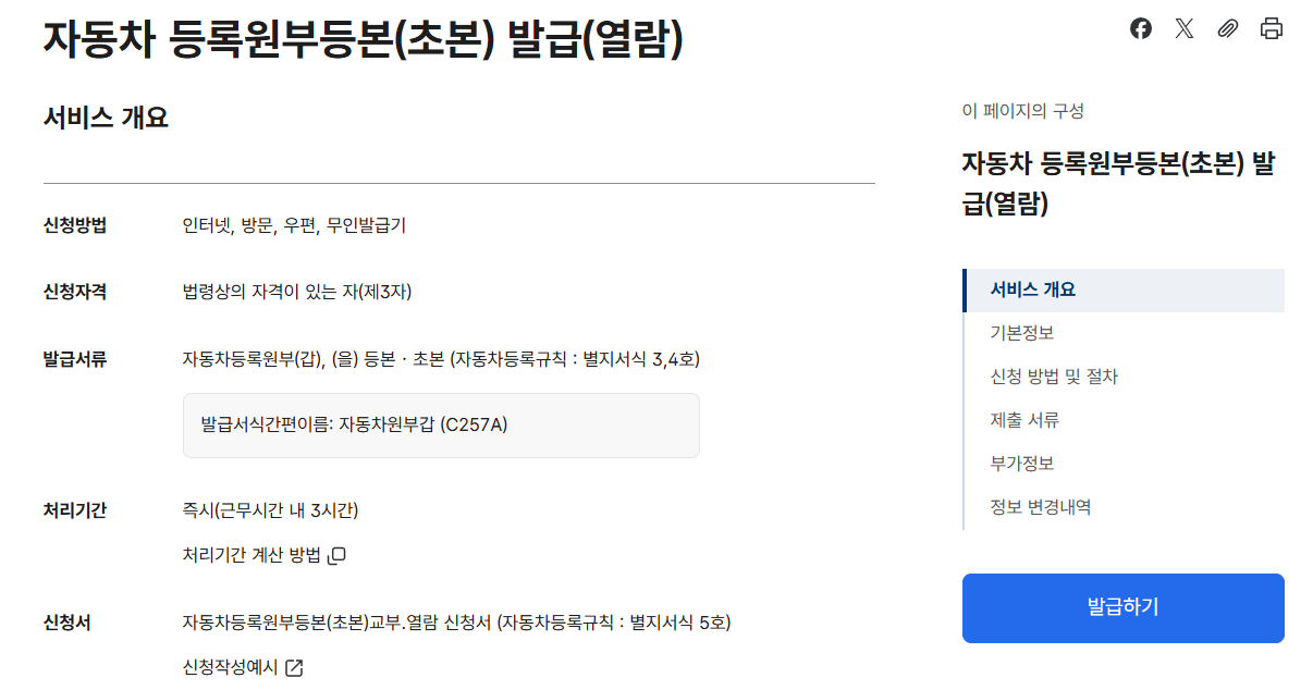 클릭하시면 자동차 등록원부등본 발급 페이지로 바로 열립니다.