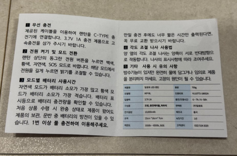 캠핑용 랜턴을 정말 오래 알아보다가 구매한 일광표 무선 충전식 랜턴에 대해서 알려드리겠습니다. 비교적 저렴한 가격 때문에 품질이 좋지 않을까 고민하시는 분들이 있으실 것 같은데요. 캠핑용 랜턴 추천을 할 정도로 가성비가 좋아서 정보 공유하고자 합니다.