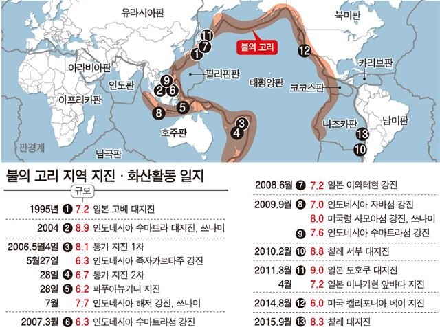 환태평양 지진대에서도 많은 지진이 있었는데요, 아래 과거의 신문 기사에서 보듯이 주요 큰 지진은 주로 환태평양 지진대에서 발생한 것으로 우리는 알고 있습니다.