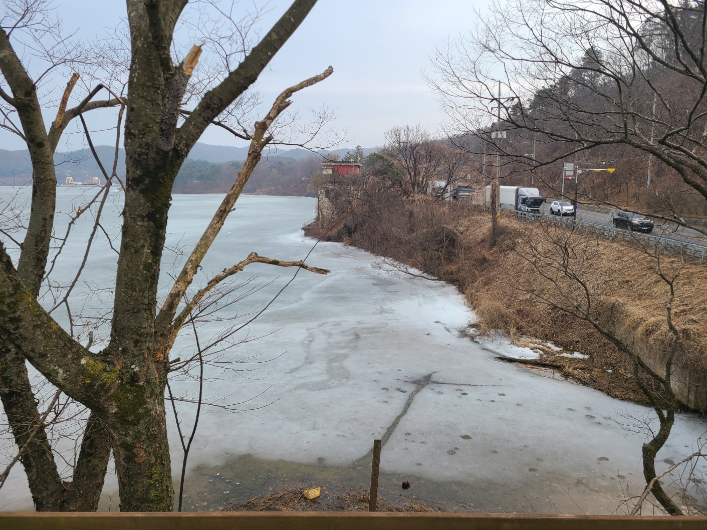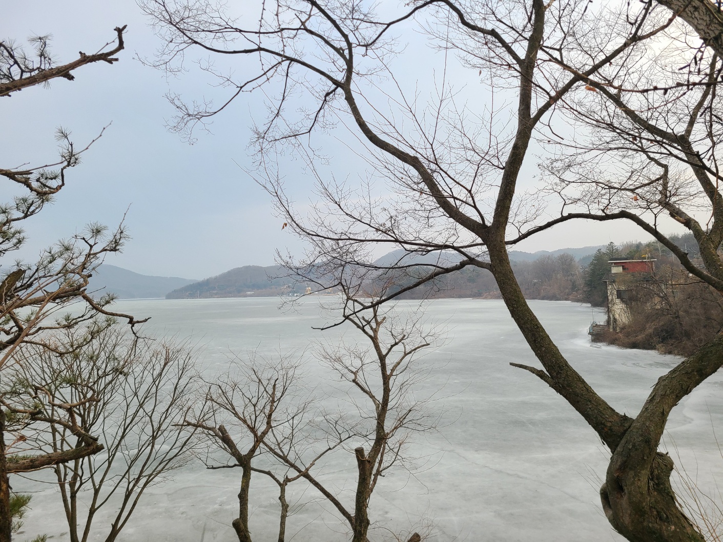 이제 곧 봄인데도 아직은 하얗게 얼어 있는 한강이 좀 어색하네요.