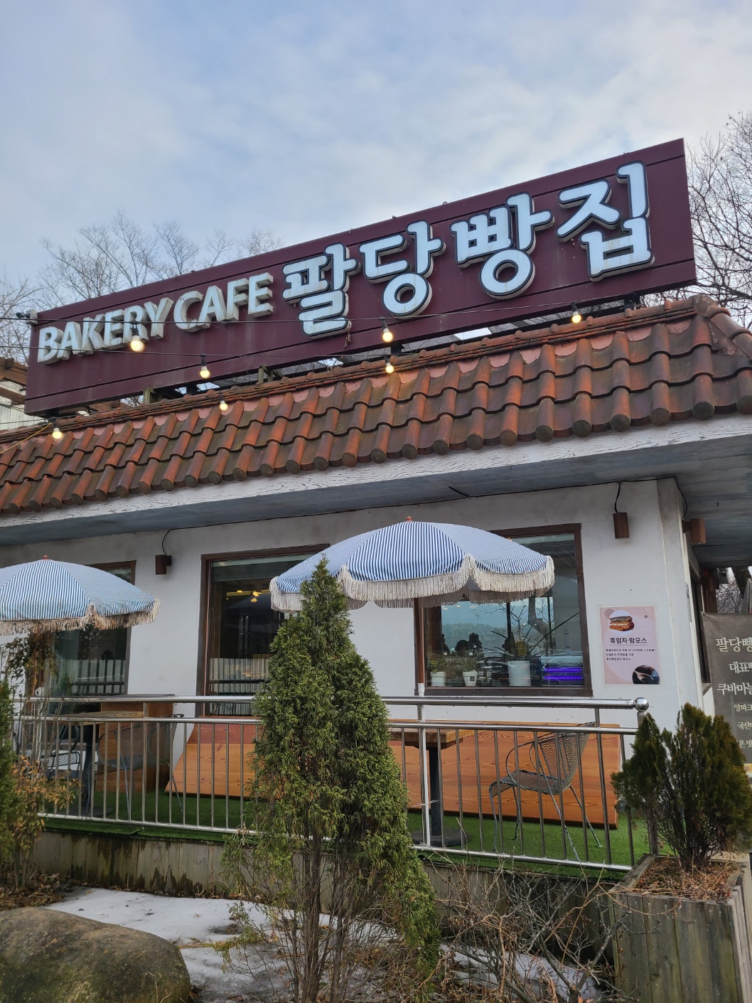 경기광주 IC를 나와 퇴촌입구를 넘어 하남시와 구리 방면으로 들어가는 45번 국도를 타고 가다보면 오른쪽 차창밖으로 정말 멋진 한강뷰가 펼쳐지는데요, 이런 멋진 곳에 뭔가 아늑해 보이는 빵집이 있길래 마침 커피도 당기고 출출하기도 해서 들어가 보았습니다. 원래는 주택이거나 매운탕집 같은 곳이었던 것 같은데 이렇게 멋지게 카페를 꾸며 놓으셨더라구요.