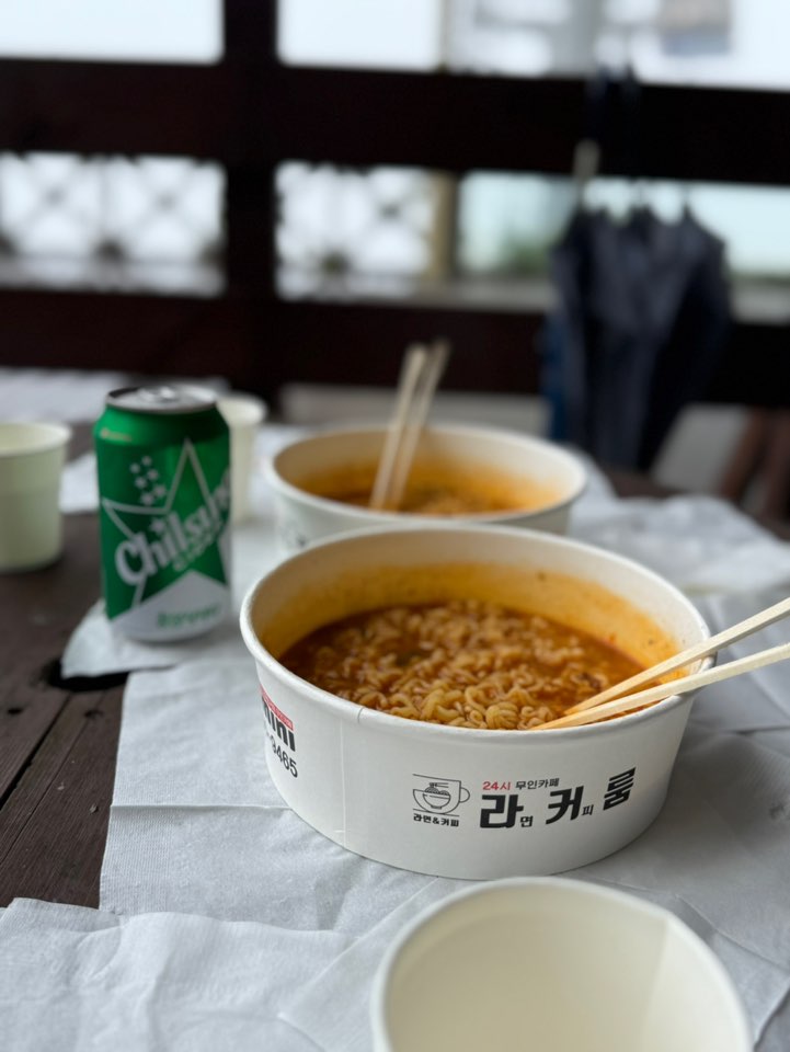 만약 날씨가 화창했다면 저 아래 경치를 바라보며 커피를 한잔 했을텐데, 다행인지 불행인지 비가 오는 바람에 라면을 먹게 되었는데 이또한 좋았습니다.